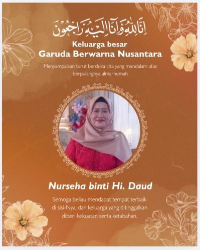 wartaoneindonesia.com — Keluarga Besar Garuda Berwarna Nusantara Menyampaikan Turut Berdukacita Yang Mendalam Atas Berpulangnya Almarhumah Nurseha Binti H.Daud