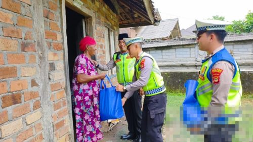 Sat Lantas Polres Way Kanan Gelar Aksi Jumat Berkah, Bagikan Sembako ke Warga